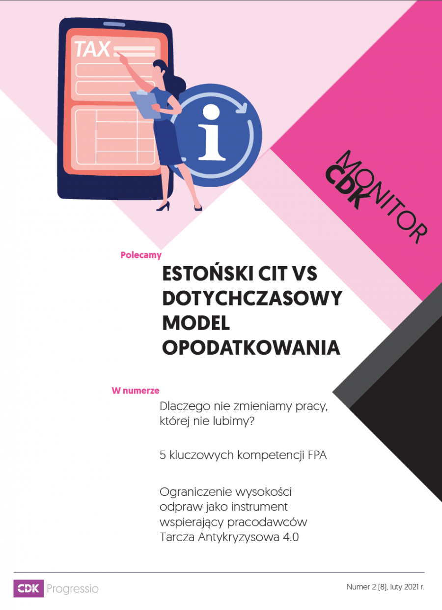 Po ponad roku trwania epidemii rząd nadal nie jest przygotowany na różne jej warianty. Społeczeństwo nie zna konkretnych scenariuszy zamrażania oraz odmrażania życia społeczno-gospodarczego, a o zamykaniu i otwieraniu różnego rodzaju działalności ich właściciele nadal dowiadują się ze zbyt małym odstępem czasowym. To nie pozwala im się odpowiednio przygotować, szczególnie, że przygotowanie to musi uwzględnić nowe okoliczności, związane z reżimem sanitarnym. Nie mamy planu odmrażania gospodarki, ale mamy pewne ułatwienia, np. poszerzony przez Tarczę 6.0 zakres pomocy dla określonych branż. Szczegóły można podejrzeć tutaj: Tarcza 6.0 – jakie wnioski można złożyć od 30 grudnia - Inne - Aktualności - ZUS Ułatwieniem może być także estoński CIT, o ile będziemy umieli z niego korzystać. Szczegółowe informacje na jego temat przedstawia w tym numerze Monitora Wojciech Safian. Na tym ważnym zagadnieniu skupiamy się też podczas szkoleń.