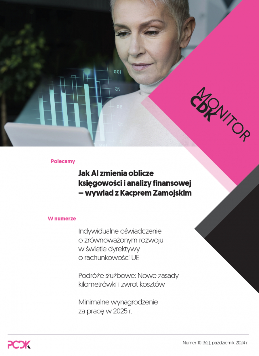 Wspomniany fragment publikacji otrzymaliśmy w drodze współpracy w wydawnictwem OnePress. Ostatni czas jest dla nas szczególnie satysfakcjonujący ze względu na coraz szerzej zakrojone działania partnerskie z podmiotami, które realnie wspierają przedsiębiorczość w Polsce. Pod tym kątem organizujemy również kolejne odsłony konferencji z zakresu kadr i płac oraz zmian w podatkach. Gorąco zachęcamy do dołączenia do grona uczestników, co pozwoli nam spotkać się osobiście i posłuchać wykładów ekspertów. Niezmiennie dostarczamy wiedzy także w Monitorze, a w tym numerze dotyczy ona między innymi działań po kontroli WIOŚ, o czym pisze w ostatniej odsłonie cyklu Dawid Nawrocki. Przyglądamy się również plusom i minusom rozliczania przez kasowy PIT. Z kolei w bardzo ciekawej rozmowie z Kacprem Zamojskim przedstawiamy konkretne rozwiązania, jakie mogą posłużyć do usprawnienia pracy nie tylko księgowej.